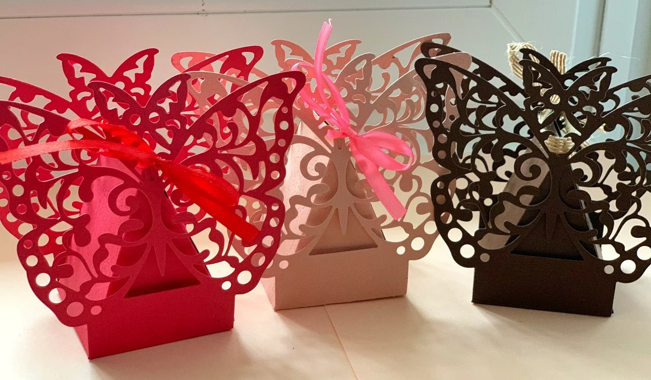 Бонбон"єрка "Метелик" має унікальний дизайн з вирізьбленим метеликом з еко паперу.